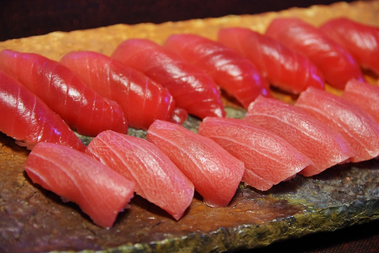 Nigiri cá ngừ sử dụng thịt từ các phần khác nhau của cá. Một số phần có nhiều mỡ hơn những phần khác, giúp cho miếng nigiri thêm phần đậm đà hơn. Nigiri cá ngừ nạc nhất được gọi là “akami”, có màu đỏ đặc trưng và thường hơi da. “Chutoro” là phần thịt cá ngừ hơi béo và thường có màu đỏ nhạt hơn một chút. Phần thịt mỡ nhất được gọi là “otoro”, thường có màu hồng nhạt và tan chảy ngay trong miệng khi thưởng thức.