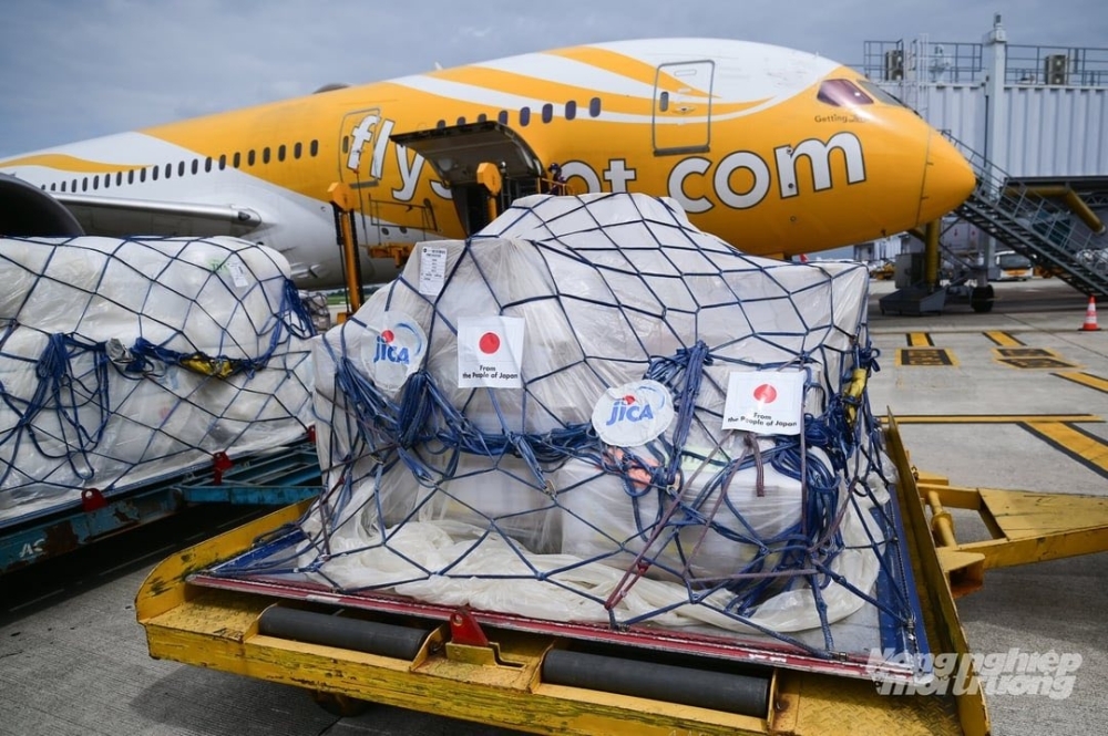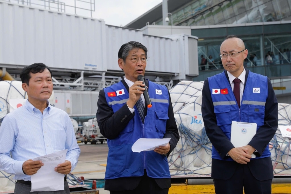 Hàng cứu trợ đã được bàn giao ngay tại sân bay Nội Bài cho Việt Nam dưới sự chứng kiến của Đại sứ Ito Naoki.