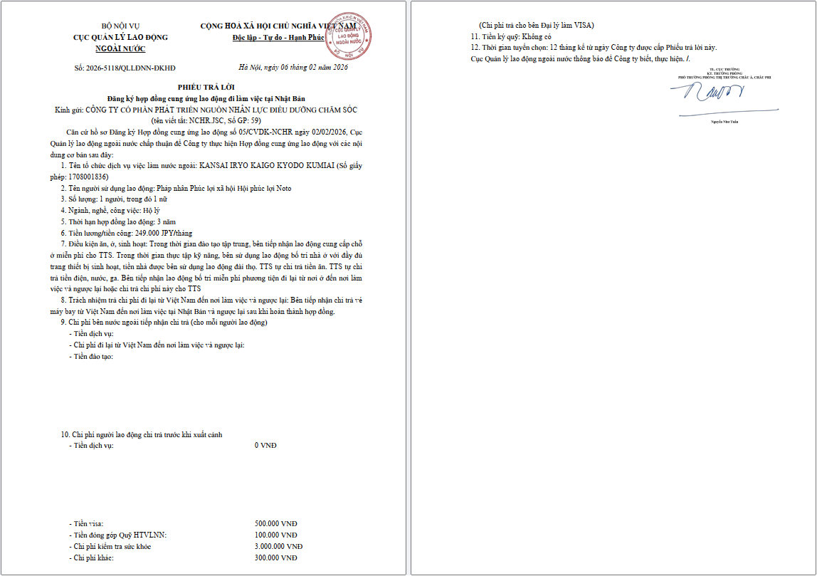 ĐƠN HÀNG THỰC TẬP SINH NGÀNH HỘ LÝ - ISHIKAWA THÁNG 2/2026